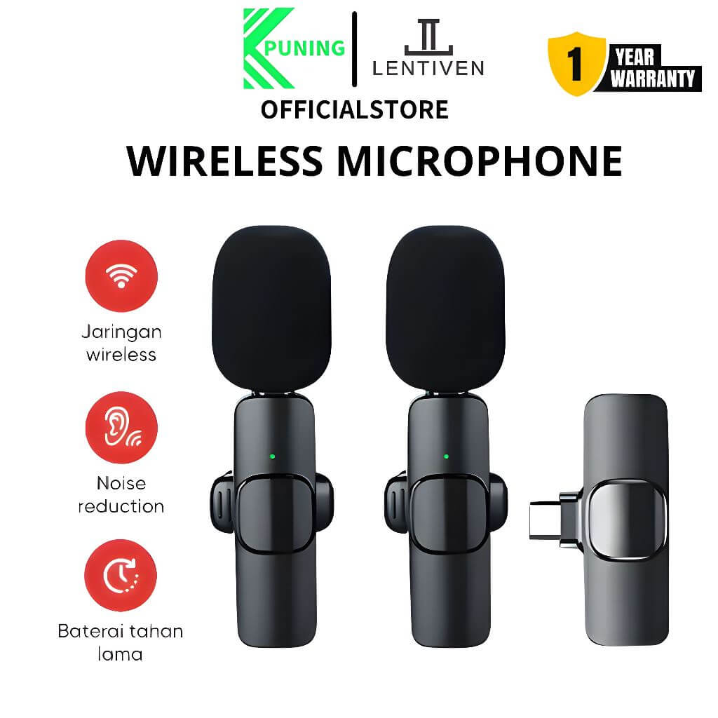 PUNING LENTIVEN Microphone Wireless Dengan Mic Clip On Libe Stream Video