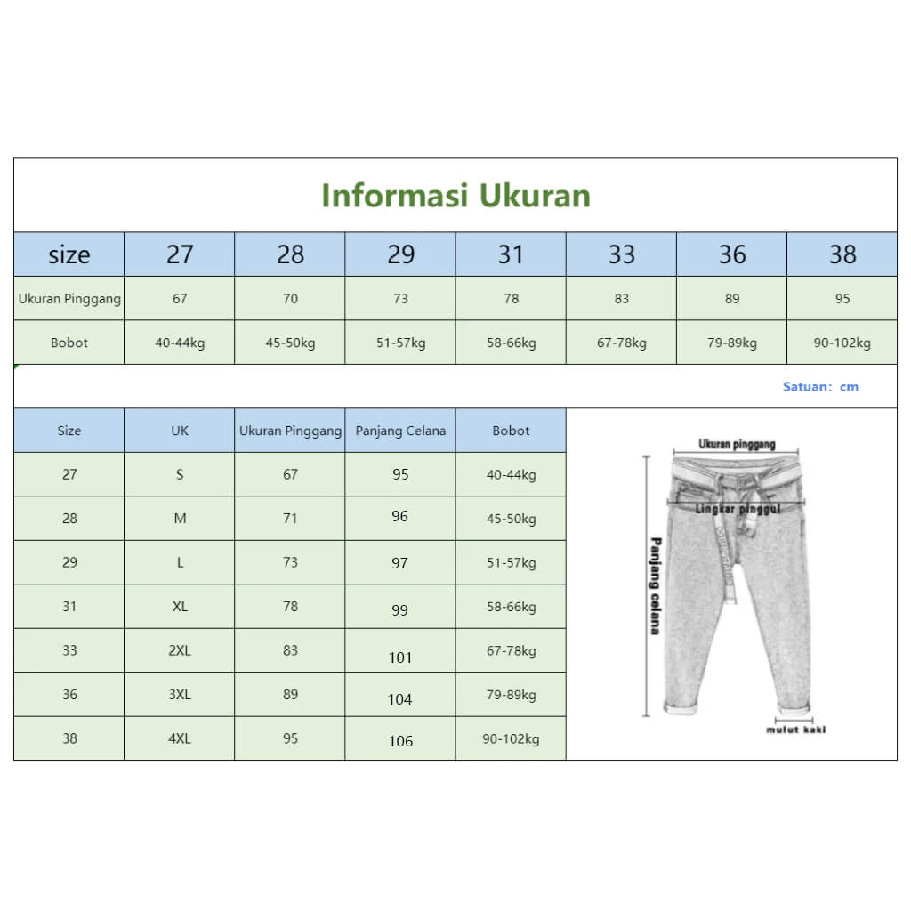 Size Tersedia : 27, 28, 31, 33, 36, 38
